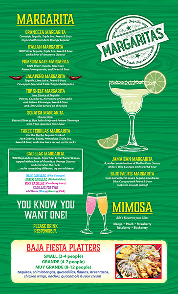 Signature Margaritas • Draft Beer • Horchata • Flan • Churros